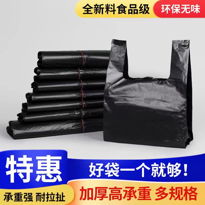 Tas sampah portabel rompi tebal rumah tangga hitam, tas rompi pegangan sekali pakai kantong plastik pabrik grosir