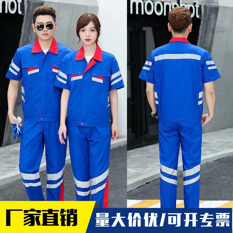 Grosir pakaian lengan pendek musim panas Cixi pakaian kerja staf lengan pendek musim panas pakaian bengkel perkakas pabrik pakaian perlindungan tenaga kerja cetak