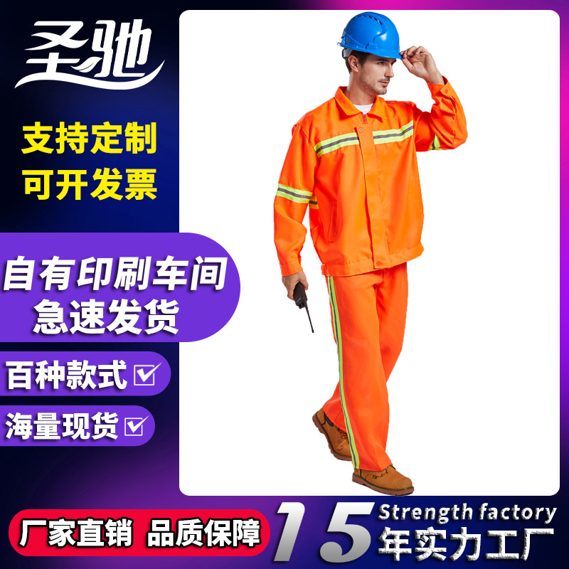 Shengchi setelan sanitasi lansekap jalan kota pemeliharaan properti membersihkan Musim Semi dan Musim Gugur pakaian pelindung tenaga kerja cetakan lengan panjang