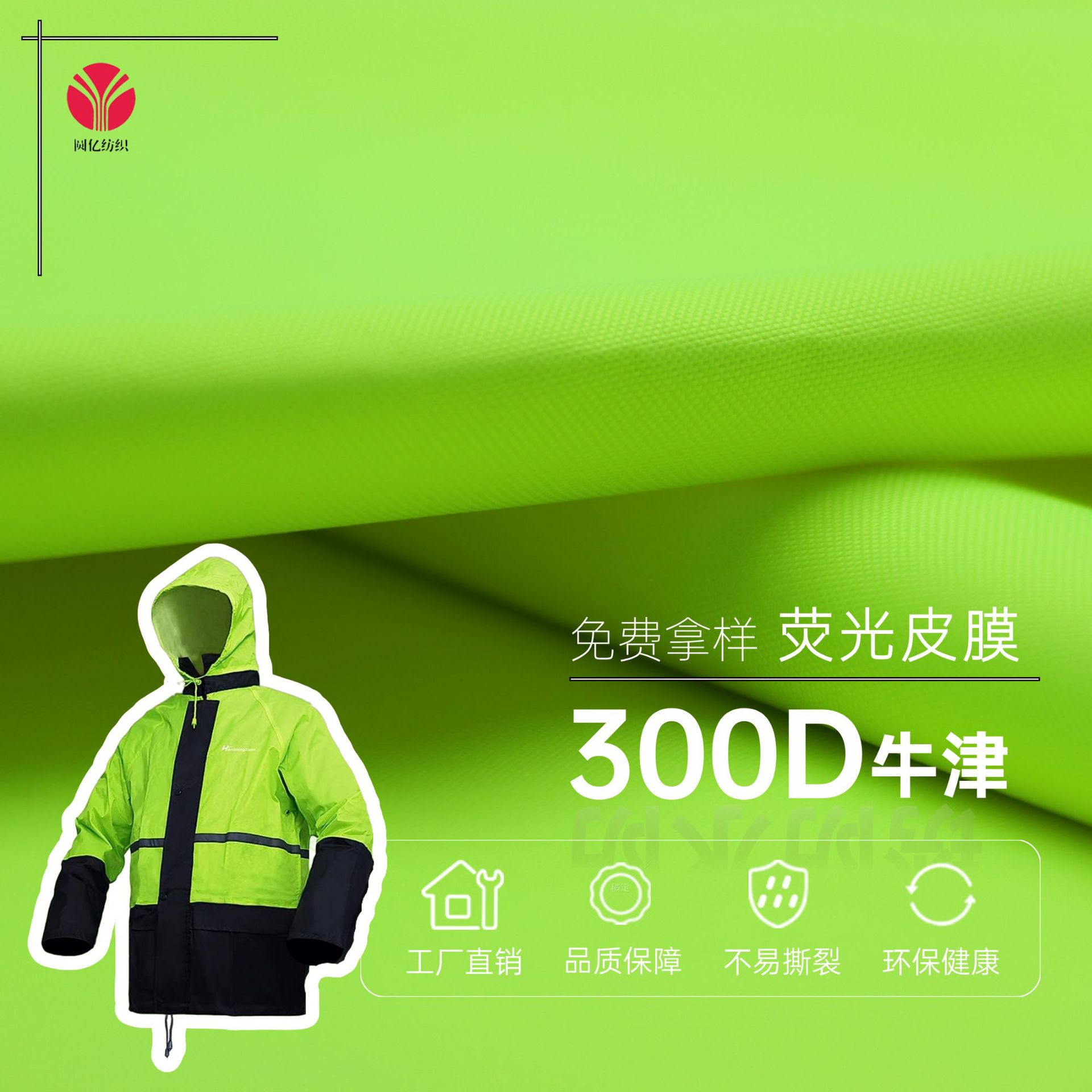 Kain Oxford dilapisi perak neon 300D tekanan air lebih dari 8000 jas hujan kerai kain alat sanitasi reflektif