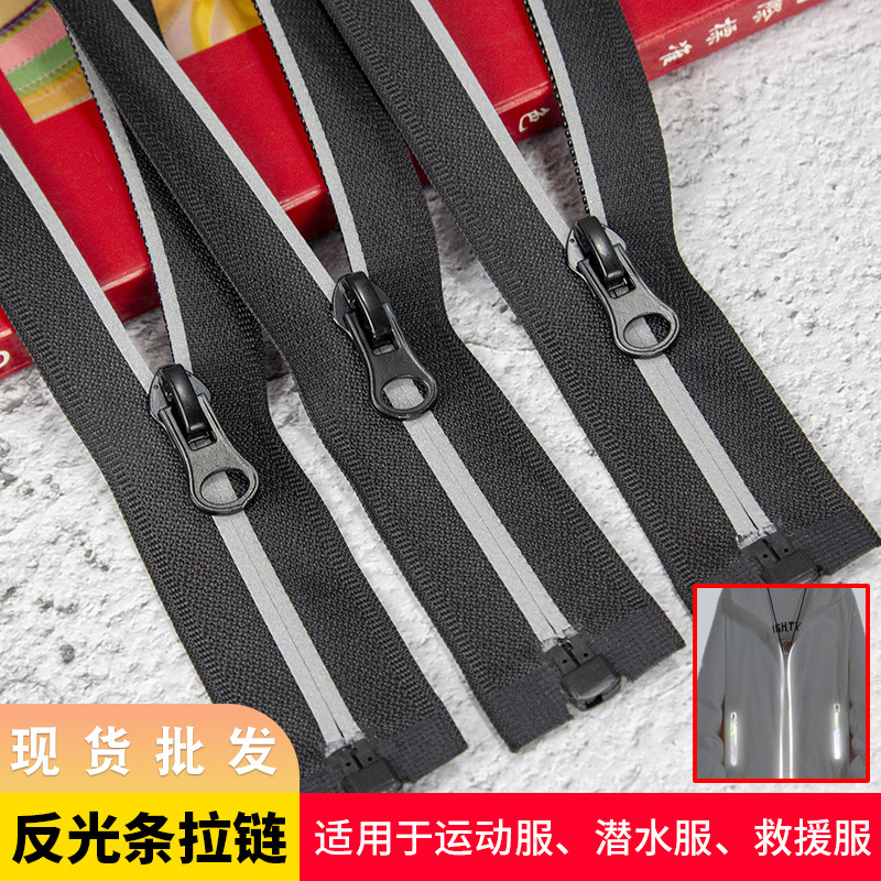 No. 5 nilon reflektif strip ritsleting satu kepala terbuka modis olahraga luar ruangan mantel perlindungan lingkungan setelan ritsleting