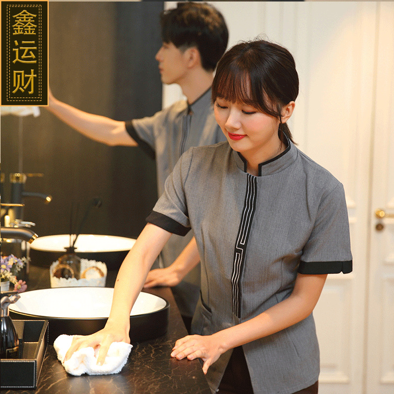 Pakaian kerja membersihkan hotel lengan pendek properti penjualan departemen hotel kamar bibi bernapas ukuran plus musim panas wanita