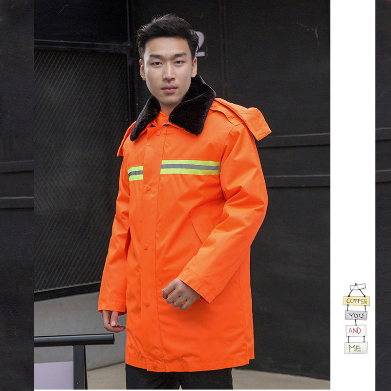 Mantel sanitasi musim dingin multifungsi tebal pabrik baju sanitasi oranye langsung baju strip reflektif pakaian bantalan katun sanitasi