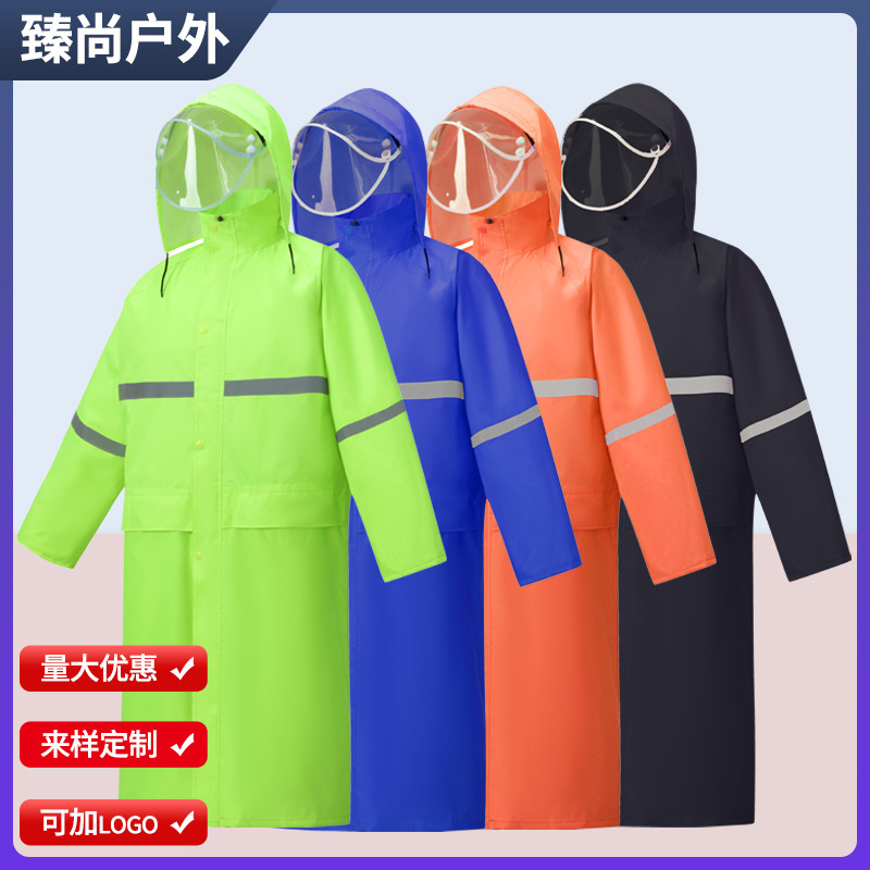 Jas hujan reflektif panjang, ponco satu potong membersihkan tugas luar ruangan taman perlindungan tenaga kerja kontrol banjir lapisan ganda tebal