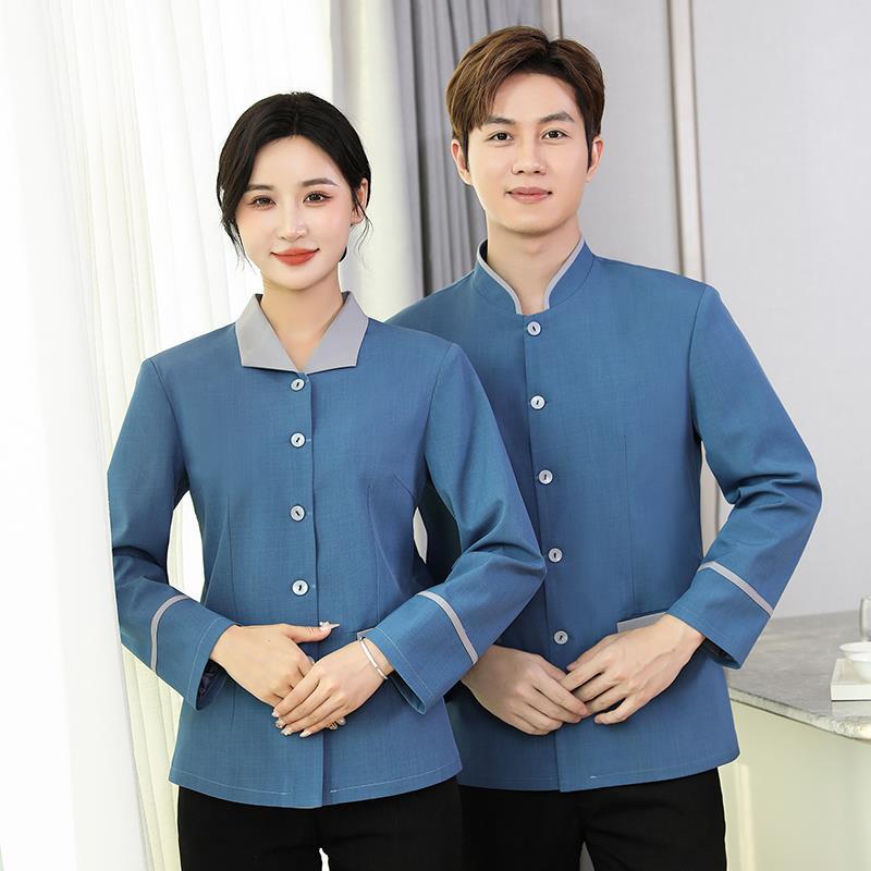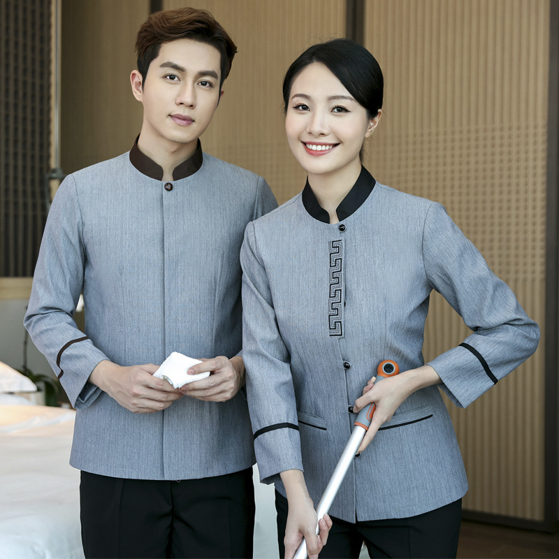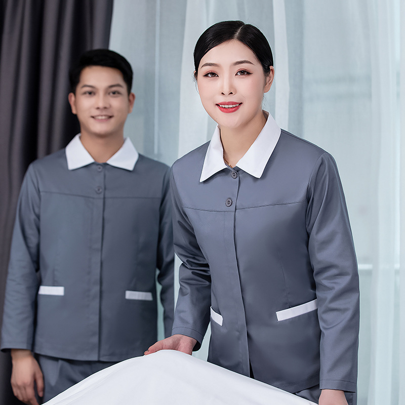 Pakaian pembersih lengan panjang musim gugur dan musim dingin, pakaian hotel katering hotel pembersih kamar seragam kerja pria dan wanita pembersih