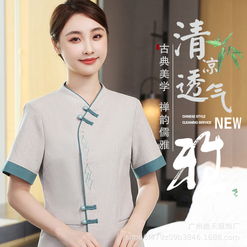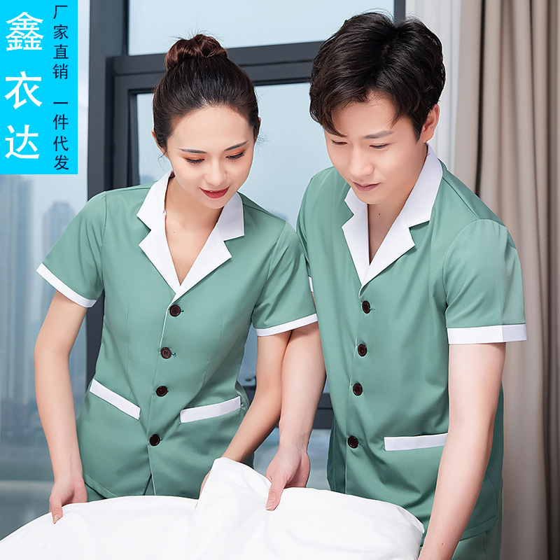 Baju pembersih lengan pendek ruang hotel PA bibi pakaian kerja pembersih pakaian musim panas properti hotel kamar pembersih pakaian pelayan