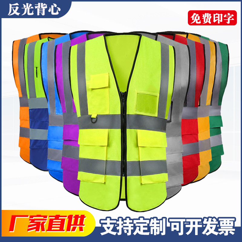 Pakaian reflektif rompi konstruksi berkendara, rompi reflektif lalu lintas sanitasi Taman konstruksi lokasi tugas banyak saku