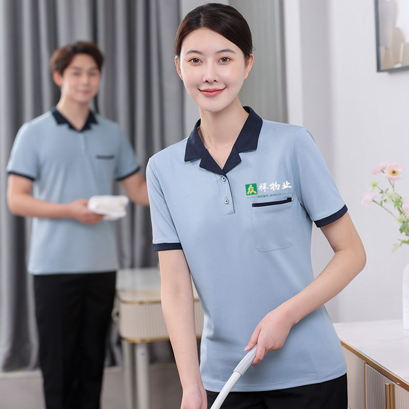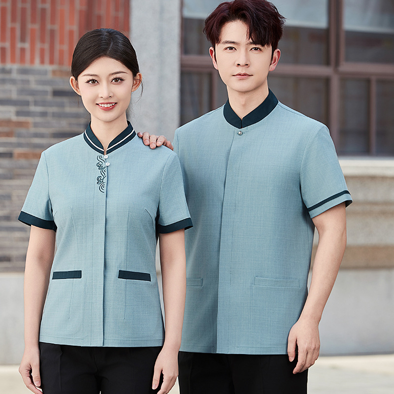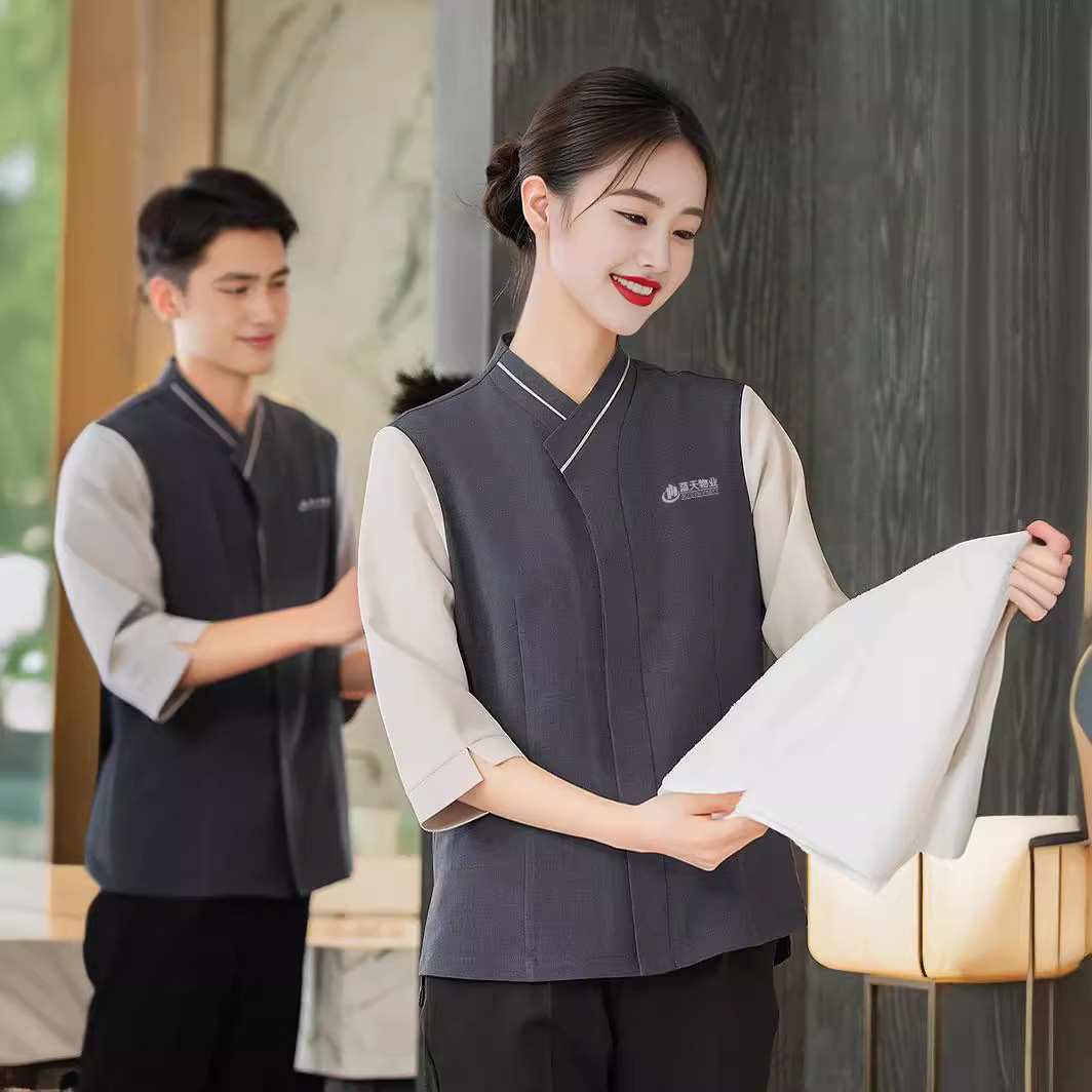Pakaian kerja pembersih hotel musim panas, lengan pendek seragam kerja pembersih rumah sakit, properti restoran hotel, pakaian kerja pembersih