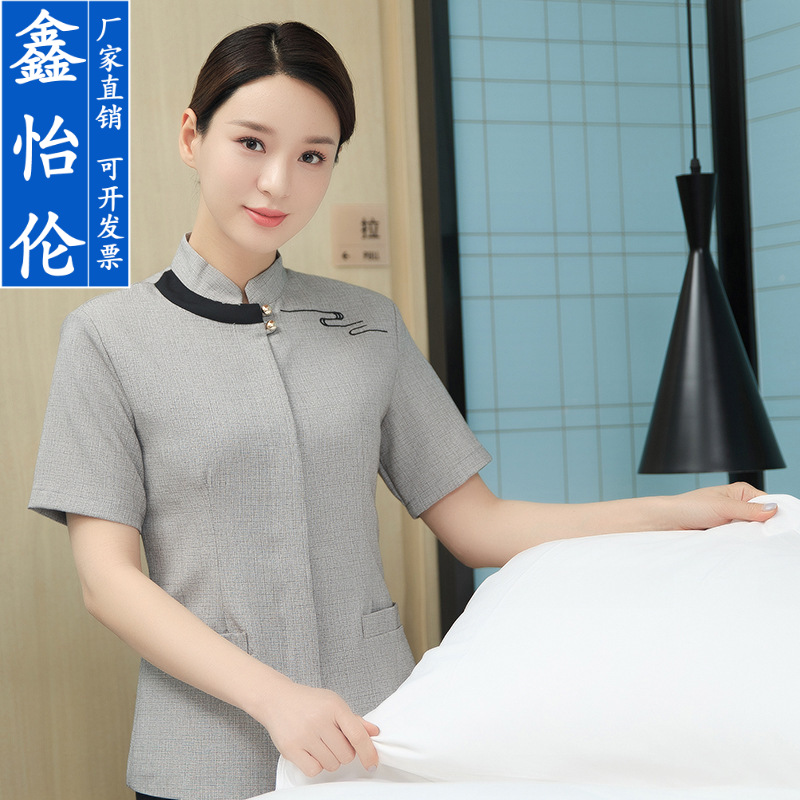 Pakaian Kerja Staf Pembersih Hotel Pakaian Musim Semi Musim Panas Bibi Membersihkan Departemen Penjualan Kamar Hotel Kelas Atas Wanita Lengan Pendek