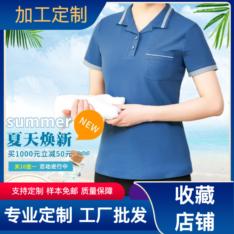 Pakaian Kerja Pembersih Pakaian Musim Panas Lengan Pendek Wanita Rumah Tangga Properti Seragam PA T-shirt Bibi Pembersih Kamar Hotel Hotel T
