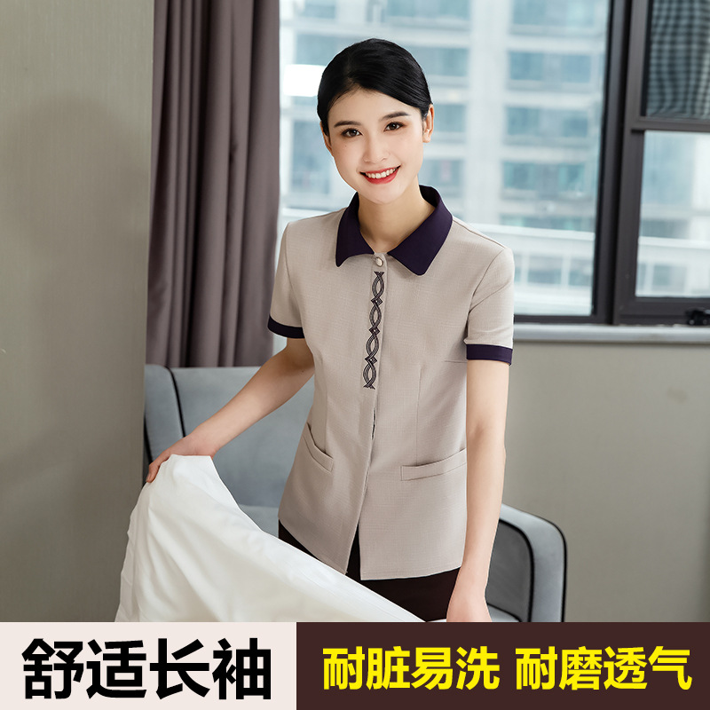 Pakaian kebersihan lengan pendek, pakaian pembersih hotel ruang tamu hotel lantai properti membersihkan pakaian kerja pelayan lengan panjang seragam PA