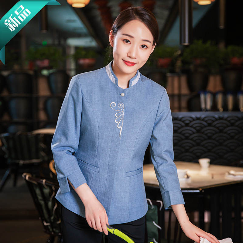 Setelan kerah membersihkan pakaian kerja properti rumah tangga belanja mall hotel kamar klub bibi pakaian pembersih lengan panjang musim gugur dan musim dingin pakaian