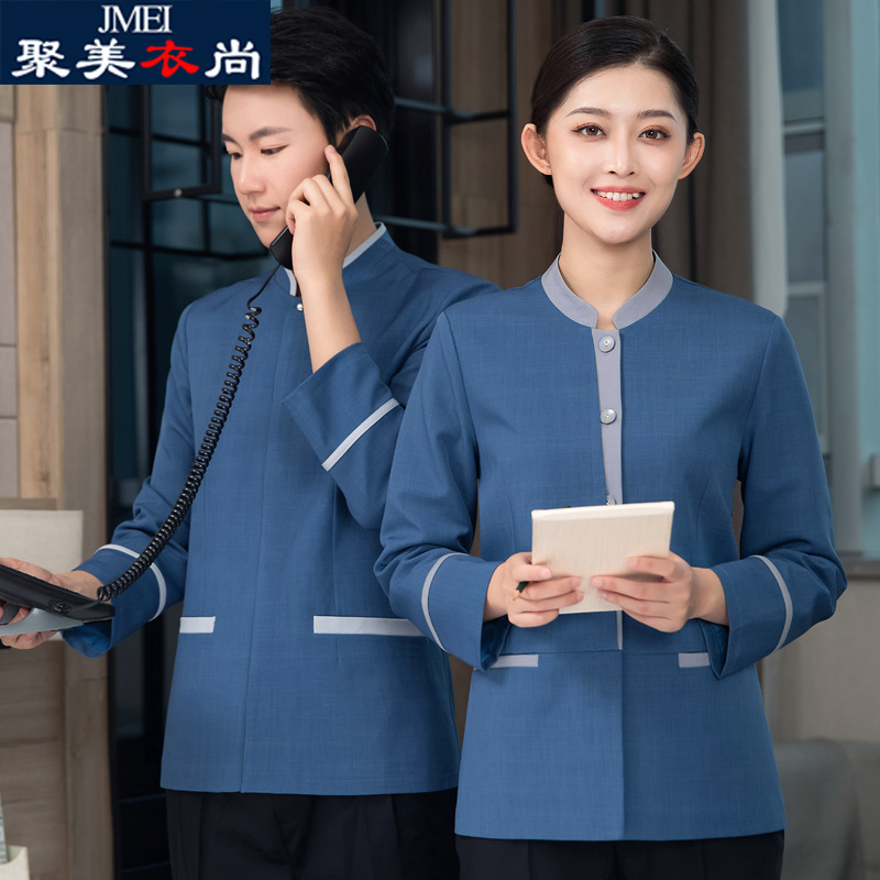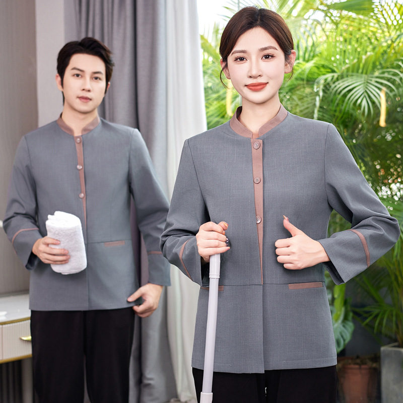 Pakaian kerja pria dan wanita, pakaian kerja membersihkan kerah berdiri hotel dan musim gugur dan musim dingin