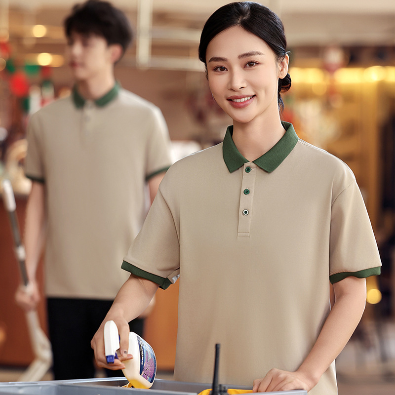 Pakaian Kerja Pembersih T-Shirt Katun Bernapas Musim Panas Lengan Pendek Pakaian PAB Bibi Pembersih Kamar Hotel Hotel Rumah Sakit Properti