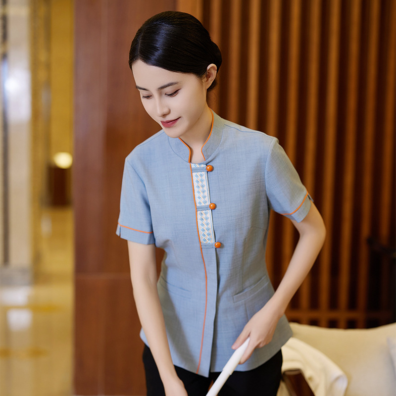 Pakaian Kerja Staf Pembersih Kamar Lengan Pendek Musim Panas Hotel Hotel Membersihkan Kantor Bibi Pakaian Bersih Properti Rumah Tangga