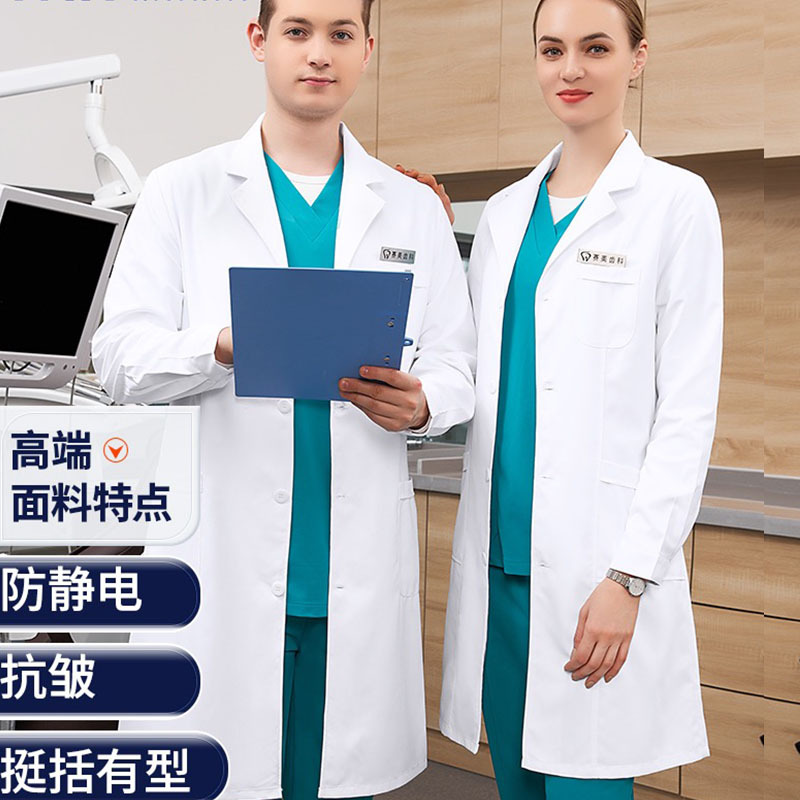Coney mantel putih dingin pakaian kerja dokter klorin pemutih mulut klinik tinggi antistatis antikeriput baju perawat