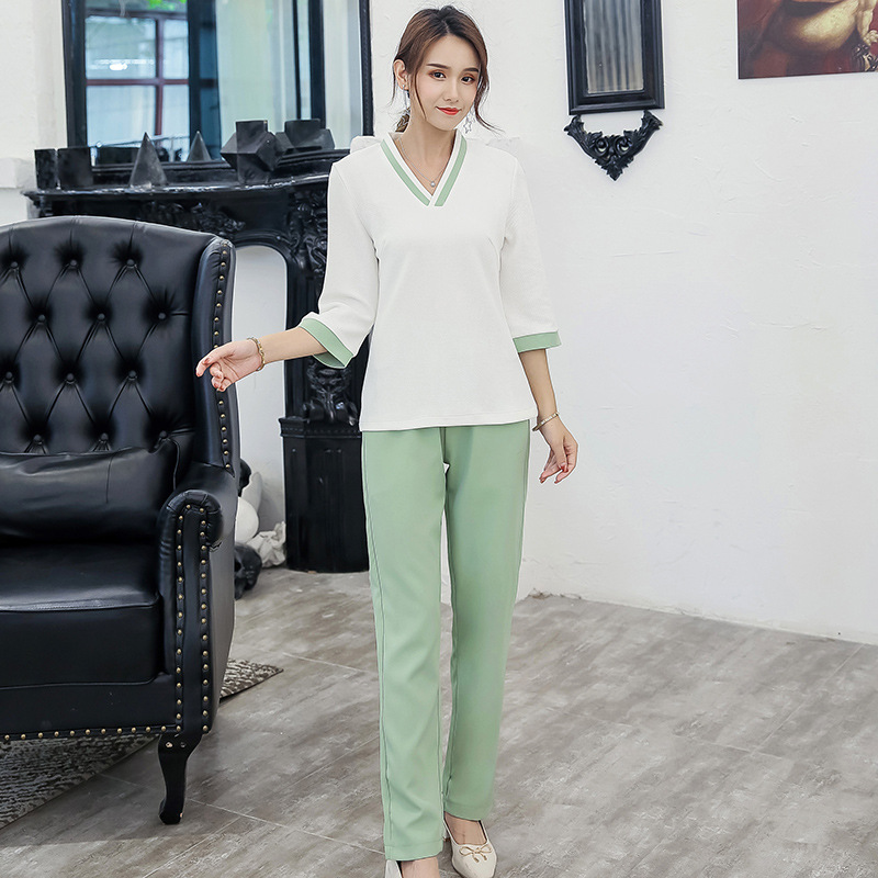 Baru pedikur pijat kaki teknisi pakaian kerja setelan pelangsing kelas atas 3013-1 rok lengan pendek
