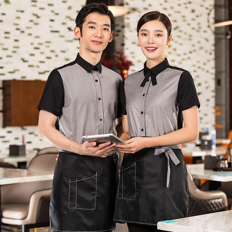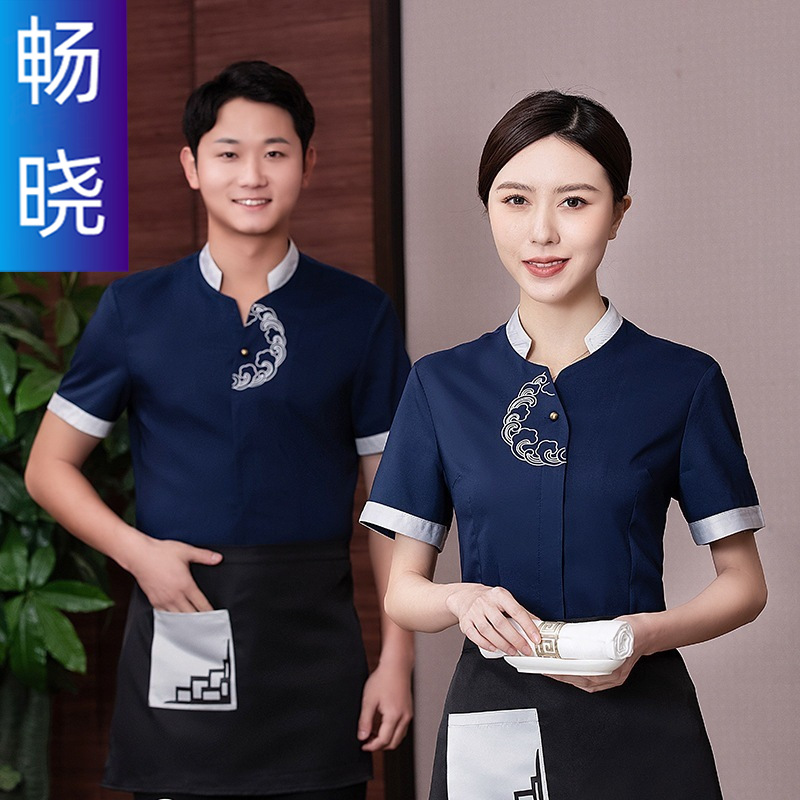 Baju kerja pelayan katering Hotel, setelan Wanita lengan pendek restoran cina rumah teh pot panas toko pakaian musim panas