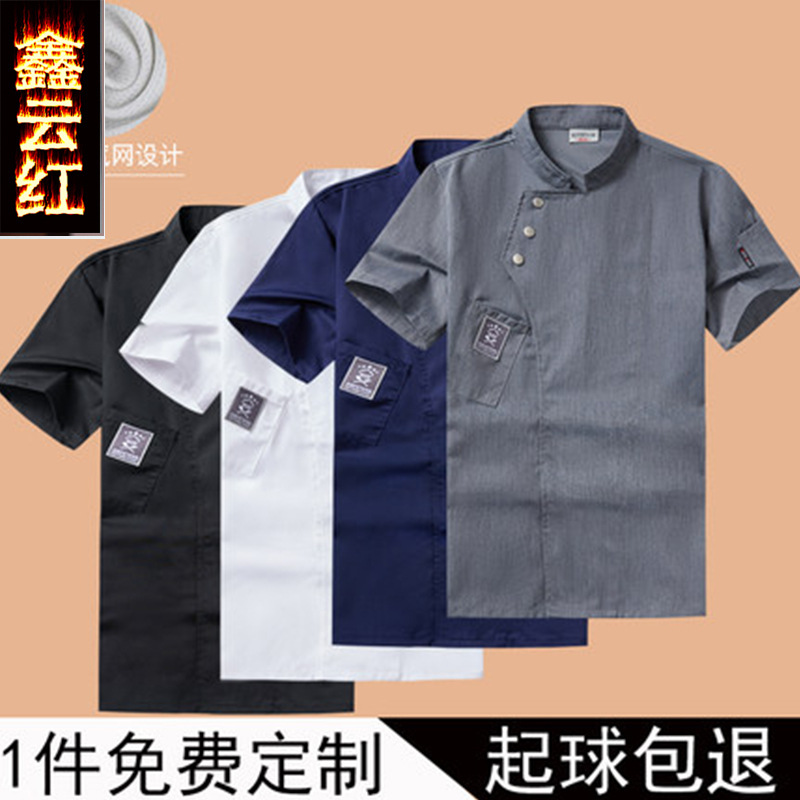 Baju kerja koki pria lengan pendek, hotel belakang dapur kue master pastry perkakas jepret bernapas katun putih murni musim panas