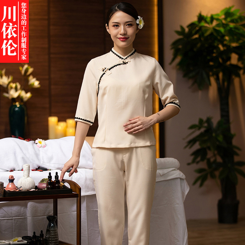 Pusat Kesehatan Kecantikan kelas atas pakaian kerja salon kecantikan setelan wanita tradisional Tiongkok Obat Meridian AC kangshi celana setengah lengan