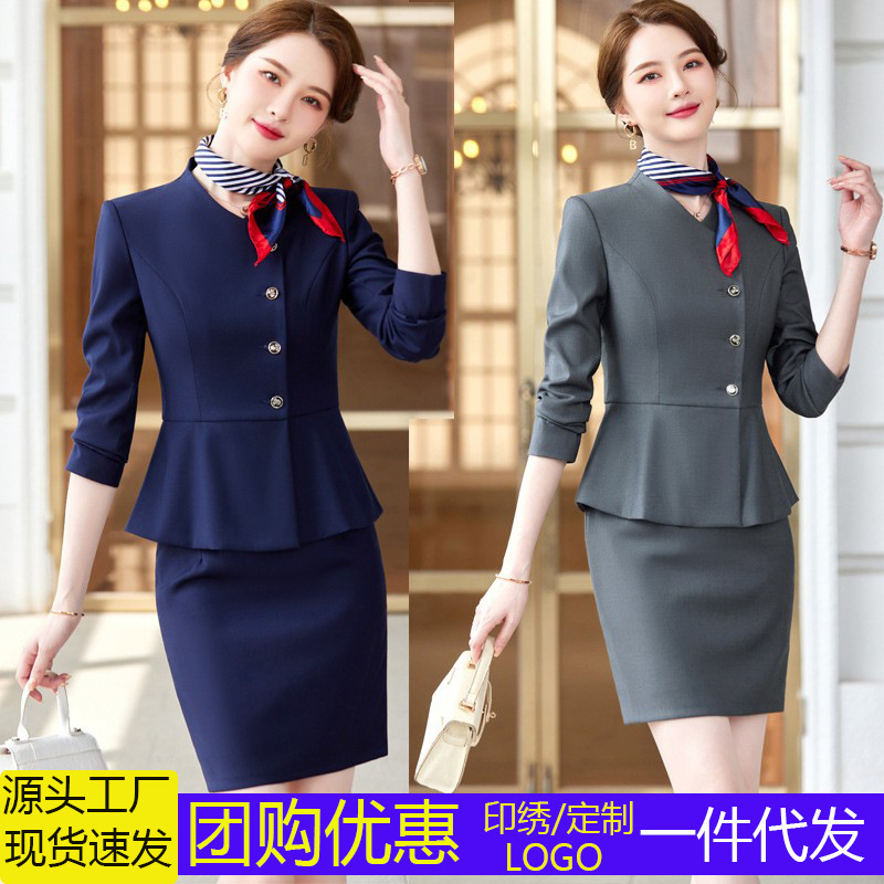 Baju kerja restoran meja depan Hotel pakaian wanita profesional musim gugur dan musim dingin lengan panjang setelan departemen penjualan toko perhiasan ahli kecantikan