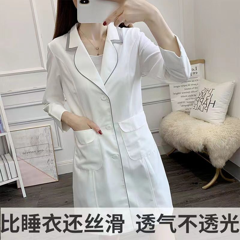Pakaian kerja salon kecantikan jas putih wanita apotek dokter mulut manajemen kulit kecantikan lengan panjang dan pendek bagian tipis berkualitas tinggi