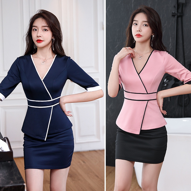 Baju kerja wanita salon kecantikan, baju kerja wanita cantik musim panas model baru, baju salon kecantikan, baju teknisi setengah lengan