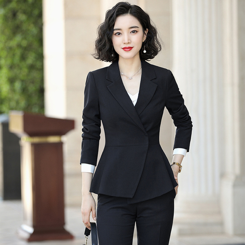Setelan profesional setelan hitam wanita pakaian kerja hotel baru pakaian kerja ahli kecantikan pakaian kerja wanita perguruan tinggi LOGO grosir