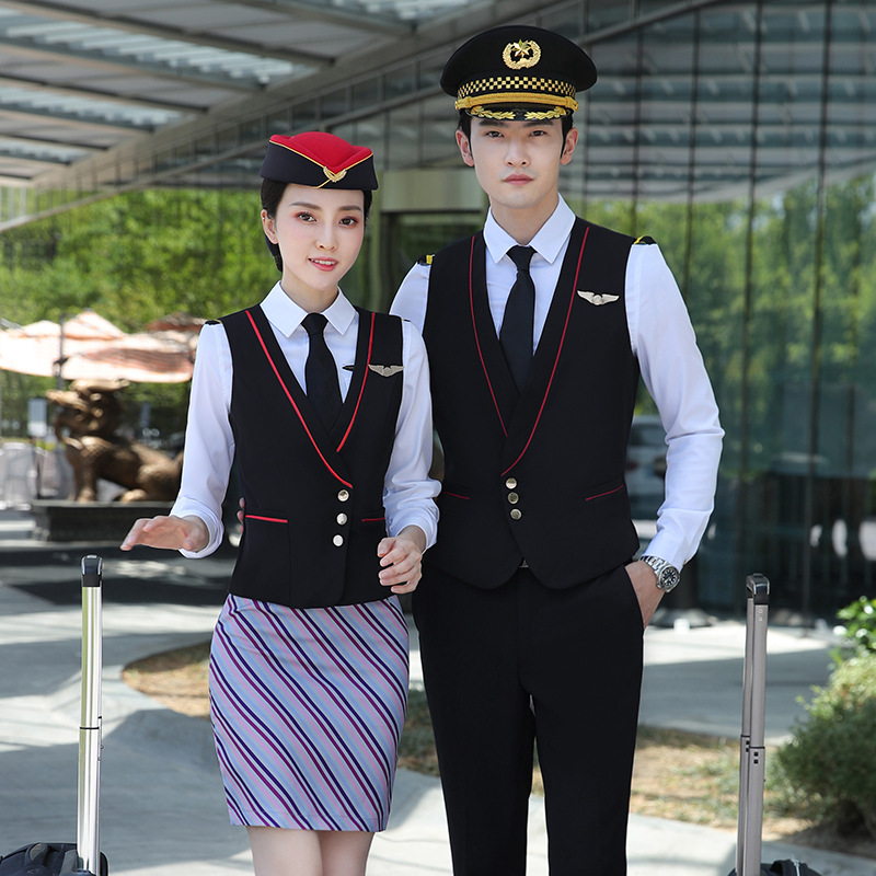 Seragam pramugari hotel meja depan pakaian kerja ahli kecantikan pakaian kerja rompi pria dan wanita pakaian bisnis sama wanita dalam stok grosir