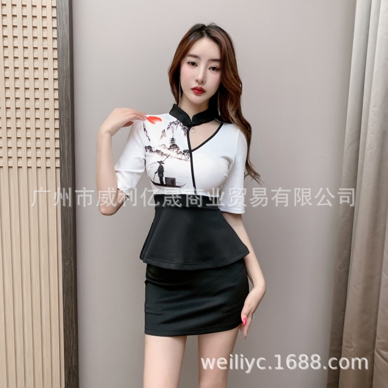 Pakaian kerja cheongsam Peningkatan Baru Musim Panas 2024 pakaian kerja salon kecantikan pakaian teknisi pedikur pijat kaki wanita setelan dua potong