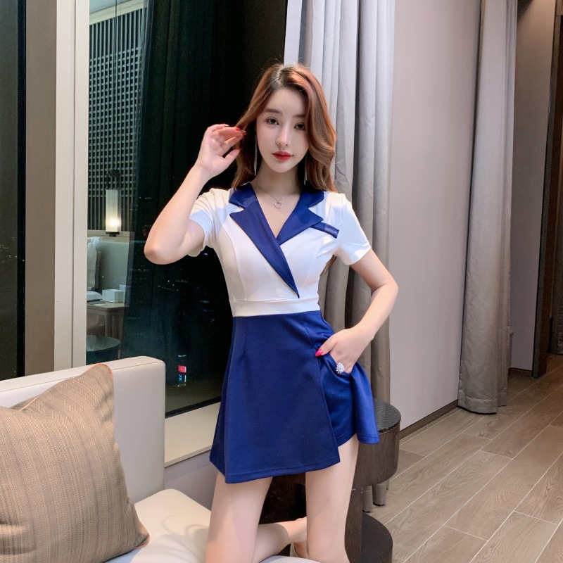 Setelan pakaian bisnis wanita lengan pendek gaun toko emas kelas atas toko perhiasan elegan slim-fit hotel meja depan ahli kecantikan