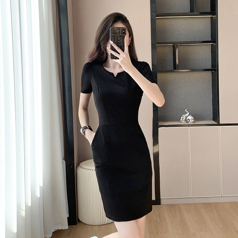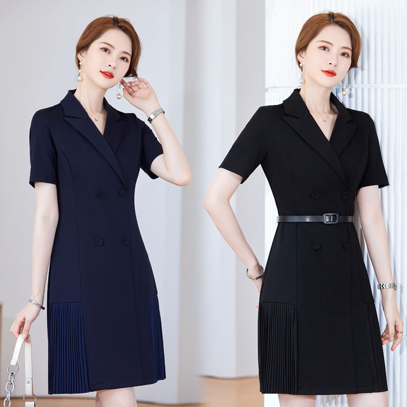 Pakaian bisnis wanita musim panas hitam gaun kelas atas penerimaan salon kecantikan teknisi toko perhiasan meja depan pakaian kerja administratif