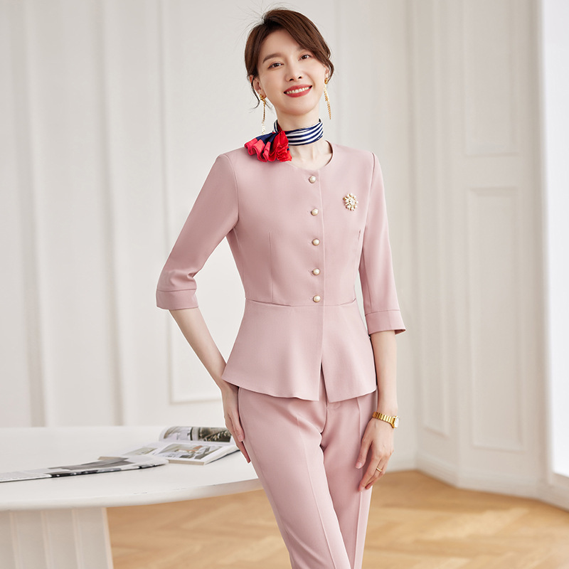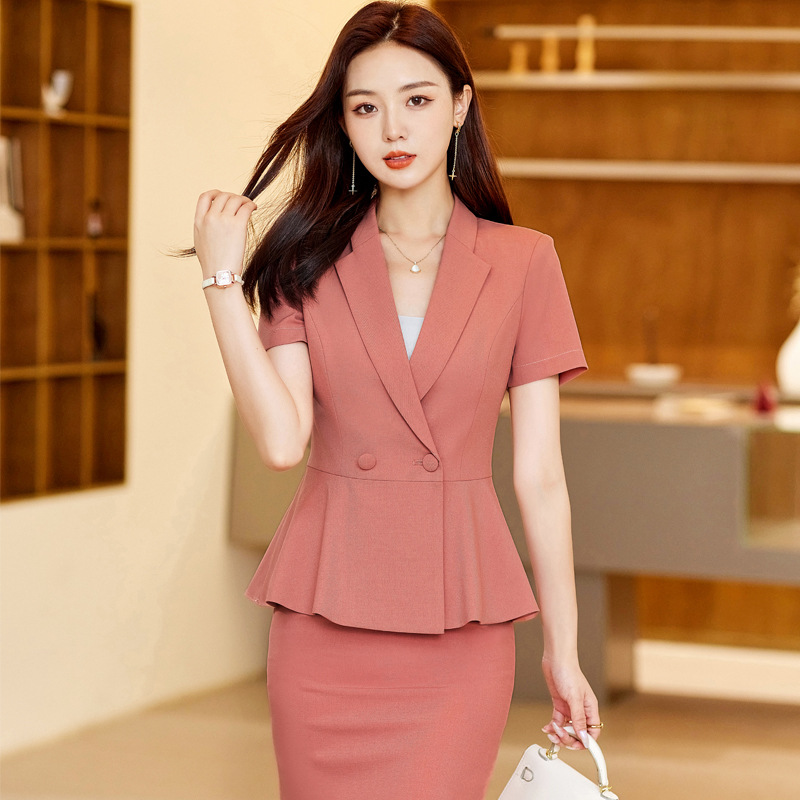 2024 ahli bisnis pakaian kerja hotel meja depan perhiasan toko pakaian kerja musim panas baru lengan pendek setelan profesional setelan wanita