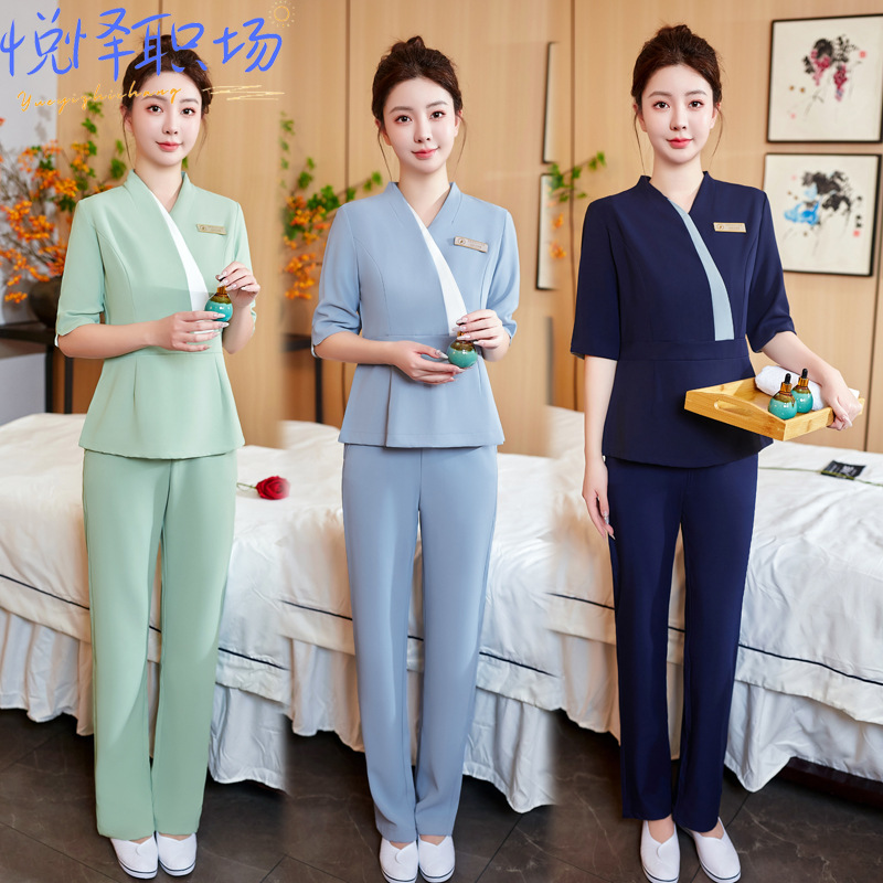 Klub kecantikan pakaian kerja gaya Cina pedikur teknisi pakaian wanita pijat Sauna mandi kaki pijat pakaian kerja setelan wanita