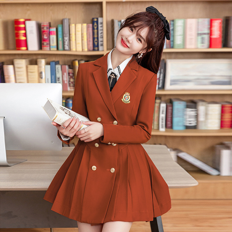 Gaya Preppy rok lipit seragam sekolah siswa cantik gaun lengan panjang guru Taman kanak-kanak Musim Semi dan Musim Gugur overall