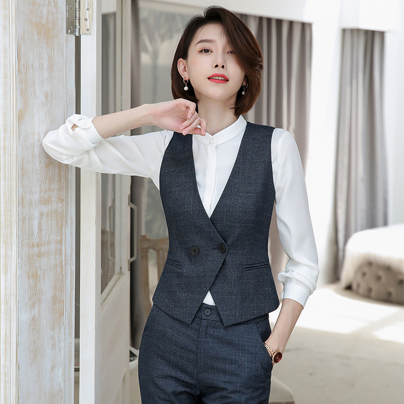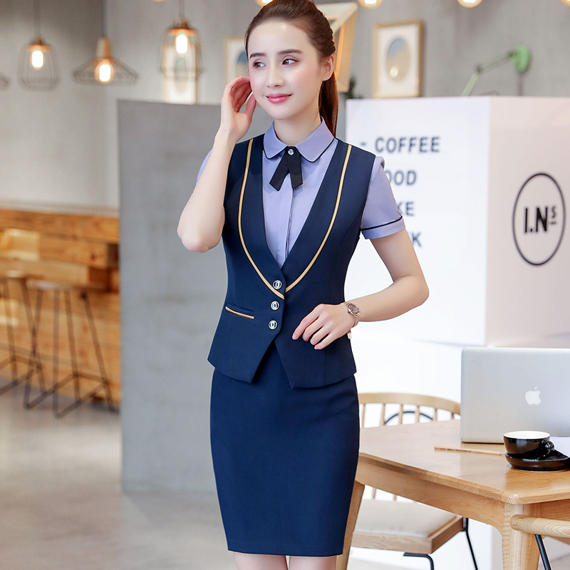 Setelan rompi profesional pakaian kerja wanita layanan pelanggan Penerimaan meja depan hotel kecantikan temperamen musim panas wanita toko perhiasan pakaian kerja