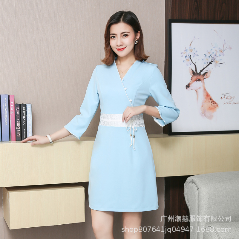 2021 pakaian kerja kecantikan baru pakaian teknisi pedikur pijat kaki 1283 setelan temperamen fashion gaya Tiongkok