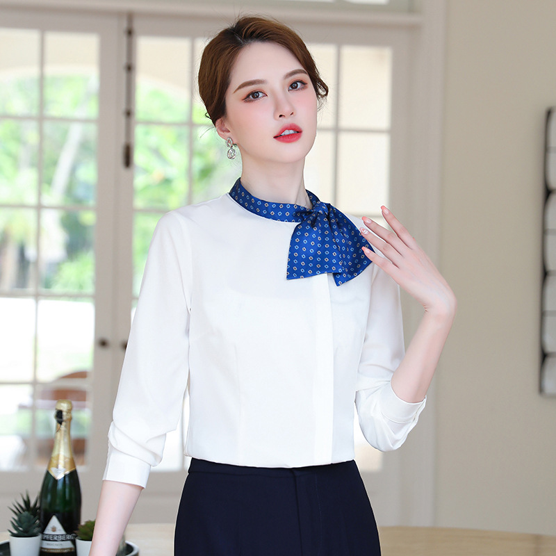 Kemeja wanita lengan panjang pakaian bisnis 2023 musim semi dan musim gugur elegan pakaian formal ahli kecantikan pakaian kerja kemeja hotel depan meja pakaian kerja