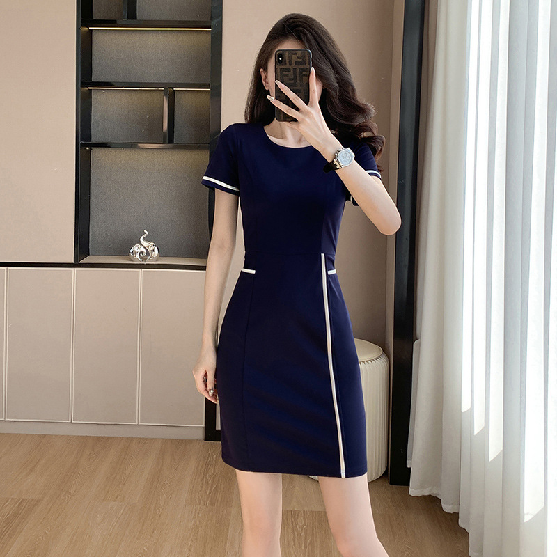 Gaun Pakaian Wanita Profesional Gaya Korea Model Baru Musim Panas Lintas Batas Pakaian Kerja Musim Panas Ahli Kecantikan Lengan Pendek Ukuran Besar Slim