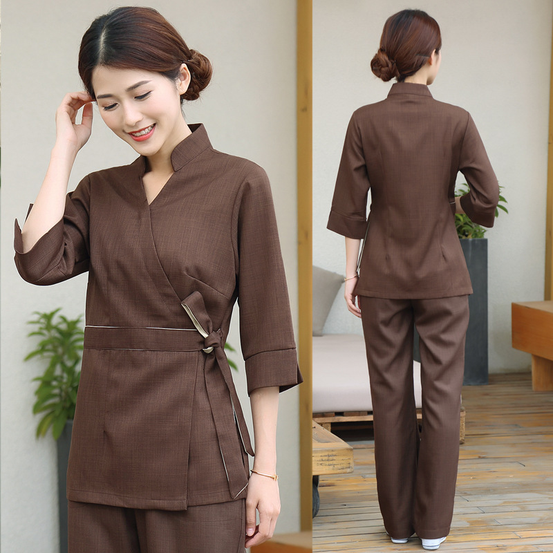 Stok tersedia mandi kaki pakaian kerja setelan linen bernapas pedikur kesehatan SPA klub seragam kecantikan