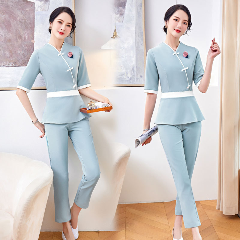 Pakaian Kerja Wanita Elegan Kecantikan Model Baru Gaun Musim Panas Terapi Mandi Kaki Pakaian Kerja Teknisi Balai Kesehatan Klub Spa