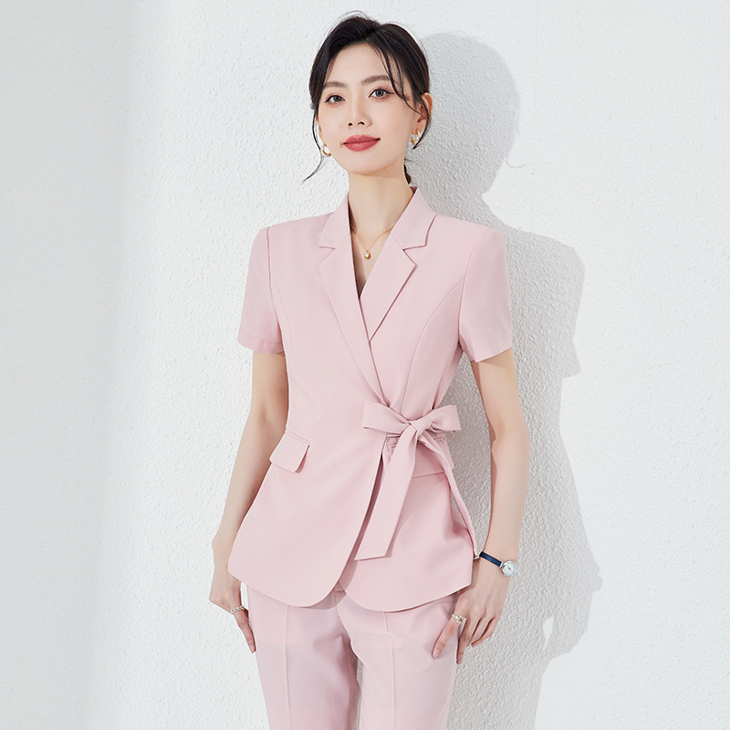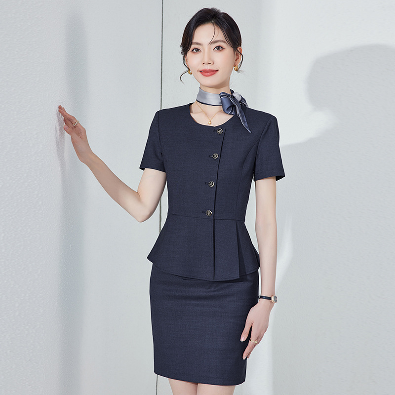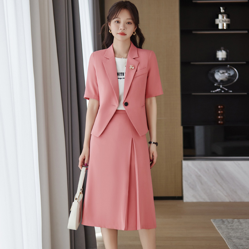 Pakaian kerja baru untuk musim semi dan musim panas set ahli kecantikan kerah v elegan bank OL pabrik pakaian kerja