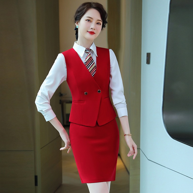 Seragam pramugari rel kecepatan tinggi setelan rompi pramugari musim gugur dan musim dingin perguruan tinggi pakaian kerja meja depan ahli kecantikan hotel