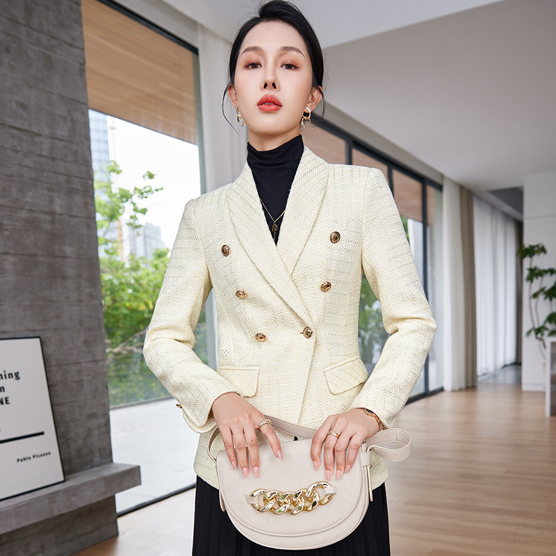 Pakaian bisnis baru musim gugur dan musim dingin 2023 setelan kecil gaya Channel Kecantikan kerah putih mode wanita slim fit selebriti internet