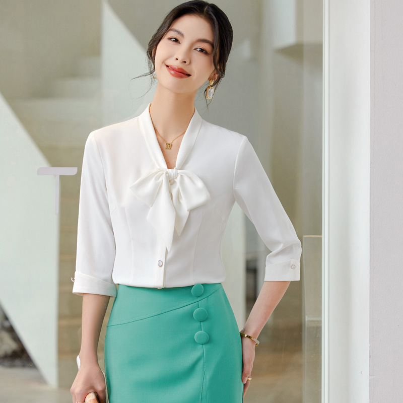 2024 musim semi dan musim panas baru pakaian wanita profesional high-end kemeja lengan setengah pinggang ketat temperamen perhiasan rok kecantikan