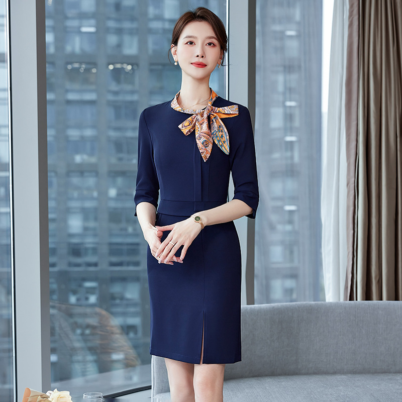 Gaun profesional lengan pendek Wanita Mode musim panas kecantikan hotel medis temperament pakaian kerja pemandu belanja toko emas meja depan