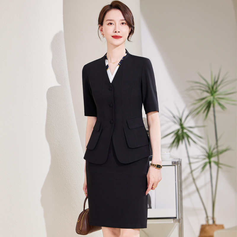 Pakaian Bisnis Setelan Jas Lengan Pendek Pakaian Kerja Ahli Kecantikan Wanita Pakaian Kecil Terlihat Kurus Komuter Toko Perhiasan Emas Kelas Atas ol