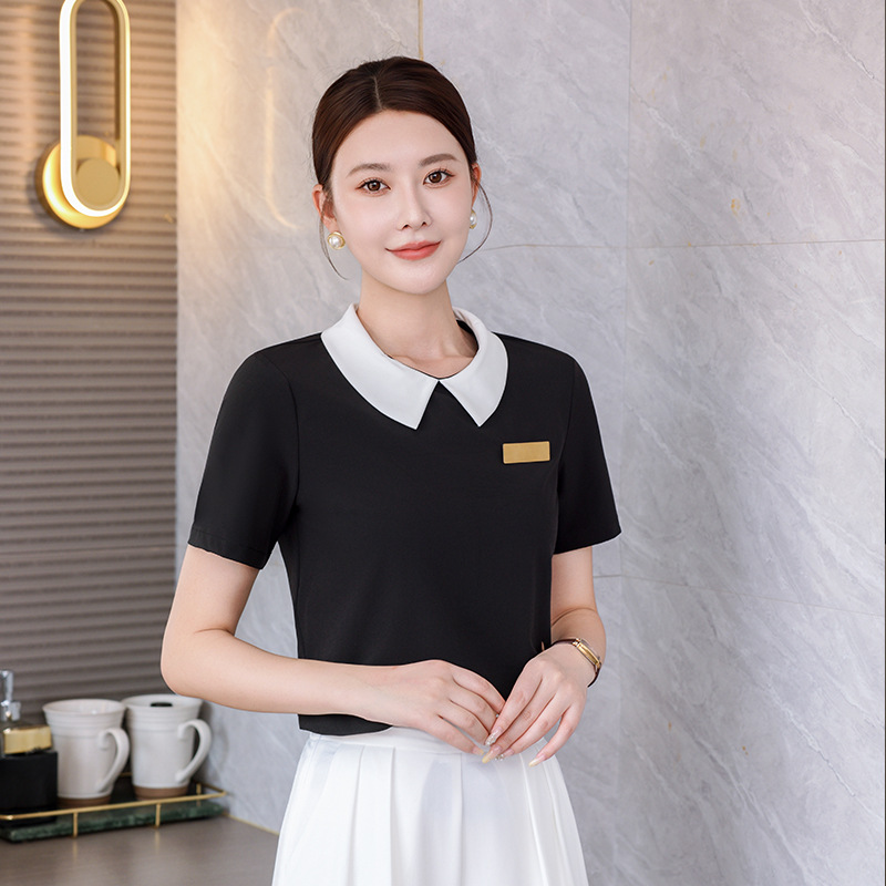 Baju kerja wanita pedikur, baju kerja temperamen pijat kaki, pakaian kerja salon kecantikan, pakaian teknisi penata rambut lengan pendek musim panas