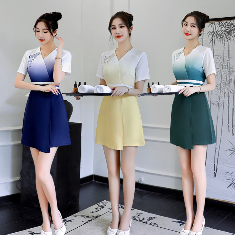 Gaun seksi klub kesehatan salon kecantikan pakaian kerja temperamen mandi wanita baju teknisi toko mandi kaki 3019