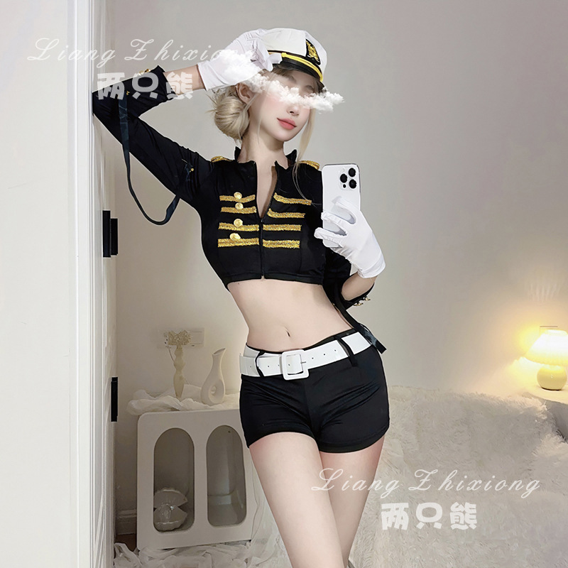 Lingerie seksi pramugari polisi wanita peran bermain seragam angkatan laut rok pinggul terbuka pinggang menggoda setelan A053